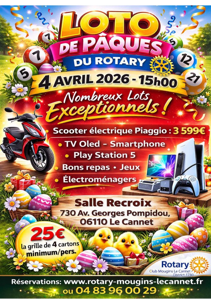 Le Rotary Club Mougins – Le Cannet organise son Grand Loto de Pâques et vous attend nombreux pour tenter votre chance !