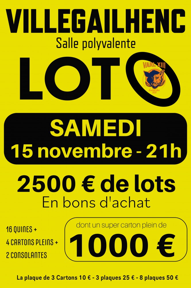 Rendez-vous ce samedi 15 novembre à 21h à la salle polyvalente. Venez nombreux !