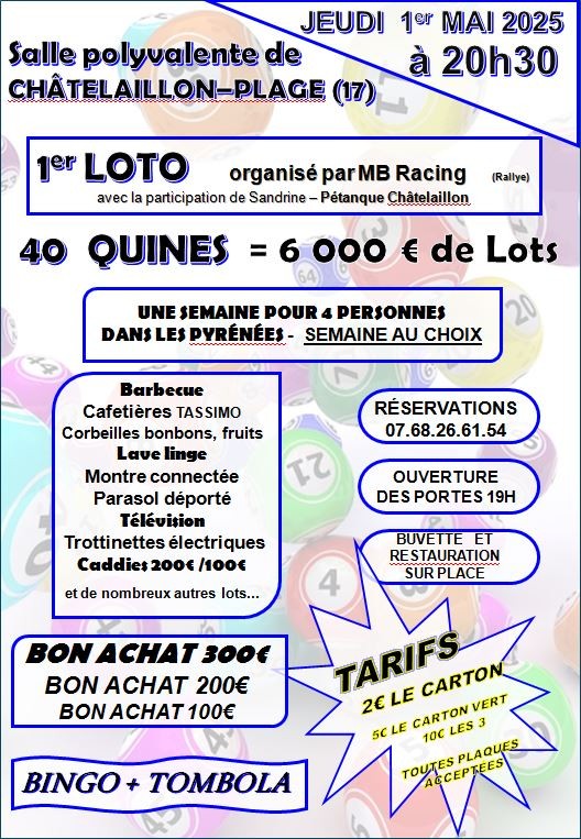 1er Loto organisé par MB Racing avec la participation de Sandrine - Pétanque CHATELAILLON PLAGE