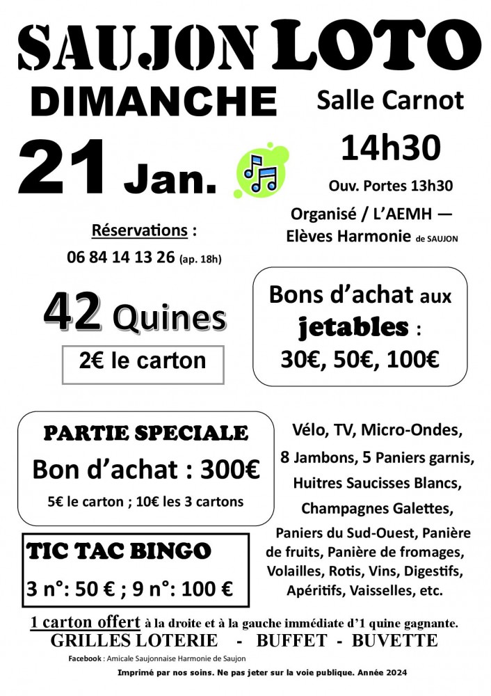 • LOTO des Elèves de L'Harmonie de SAUJON