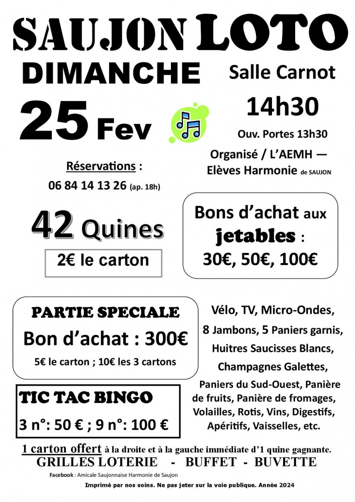 • LOTO des Elèves de L'Harmonie de SAUJON
