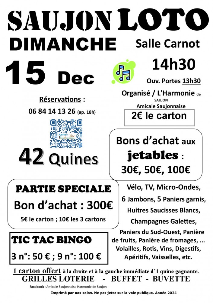 LOTO de l’Amicale Saujonnaise Harmonie de SAUJON