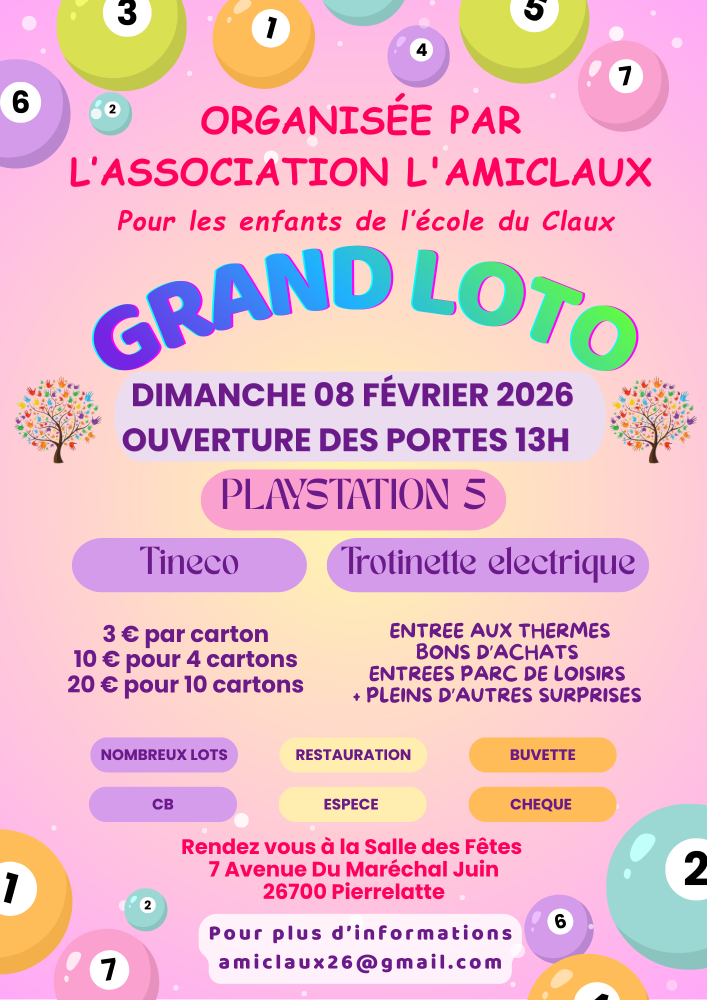 Loto de l'Amiclaux, Association de Parents d'Elèves des écoles du Claux.