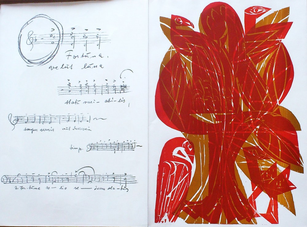 Passionné d’histoire et du Moyen Âge, Carl Orff a retenu 24 des 315 textes du manuscrit originel pour composer ses Carmina Burana. Il n’a en revanche pas utilisé les mélodies d’origine, ignorant probablement les règles de l’écriture neumatique du Moyen Âge. Carl Orff n’a pas souhaité reconstituer un monde médiéval authentique, il s’en est inspiré et a construit une cantate imposante faisant appel à un instrumentarium et à des forces musicales typiques du 20e siècle, bâtie sur un texte dans lequel il est question de la nature éphémère de la vie, de la fragilité du pouvoir, mais aussi des plaisirs de l’alcool, de la chair, du jeu.