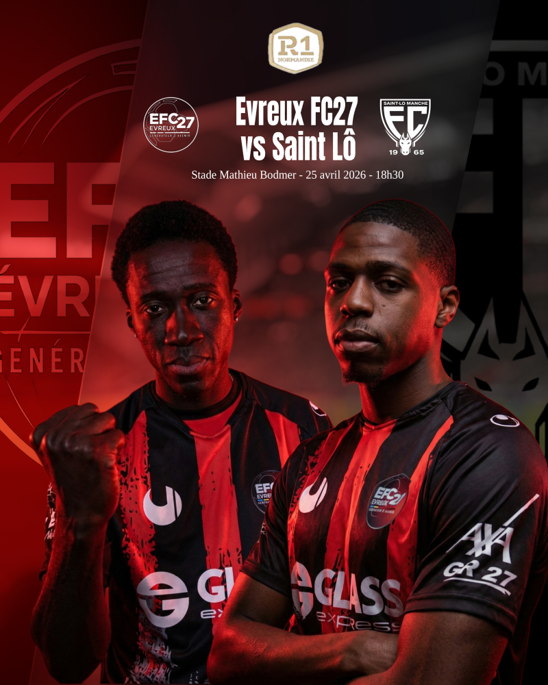 Ce samedi 25 avril 2026, l’Evreux FC27 reçoit Saint-Lô Manche FC au Stade Mathieu Bodmer pour une rencontre importante du championnat de R1 Normandie.