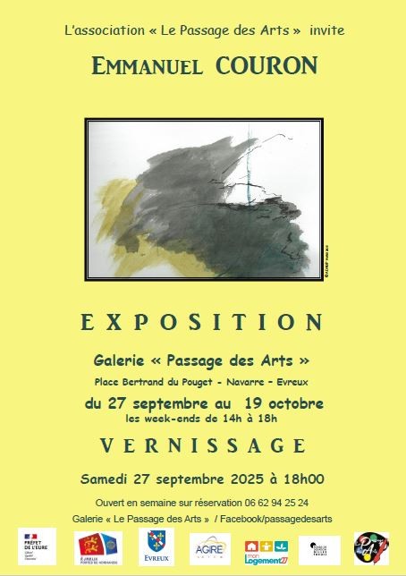 En 1987, Emmanuel COURON découvre la Maison des Arts d'EVREUX. Il fréquentera l’atelier peinture de Christian FERRE, puis l’atelier de gravure de Maurice MAILLARD.