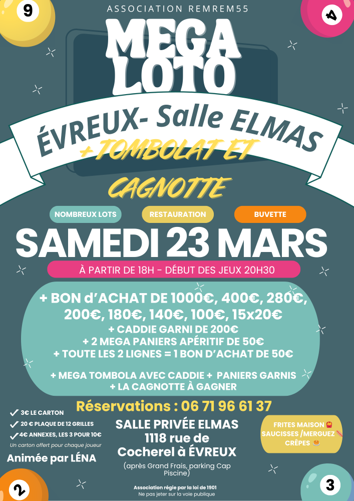 Tarifs : 3€ le carton, 20€ la plaque de 12 grilles, 4€ annexes, les 3 pour 10€. Un carton offert pour chaque joueur présent, augmentant ainsi vos chances de gain !