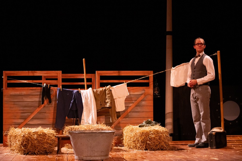Sur un texte de Clément Hervieu-Léger de la Comédie Française, la Cie des Petits Champs a mis en scène « Le voyage en Uruguay »;. Cette jolie fable rurale rapporte une curieuse transhumance transatlantique reliant le petit village Eurois de Rouge-Perriers à Montevideo. Dans les années 50, une famille d’éleveurs uruguayens se rend en Normandie pour y trouver une race bovine capable d’améliorer la capacité laitière de son troupeau. Quelques taureaux et vaches quittèrent ainsi les herbages normands pour la pampa. De l’étable au pont du cargo, un voyage initiatique conduisit un jeune vacher du plateau du Neubourg en Uruguay afin d’escorter une partie de son cheptel. Un superbe hommage aux campagnes.
