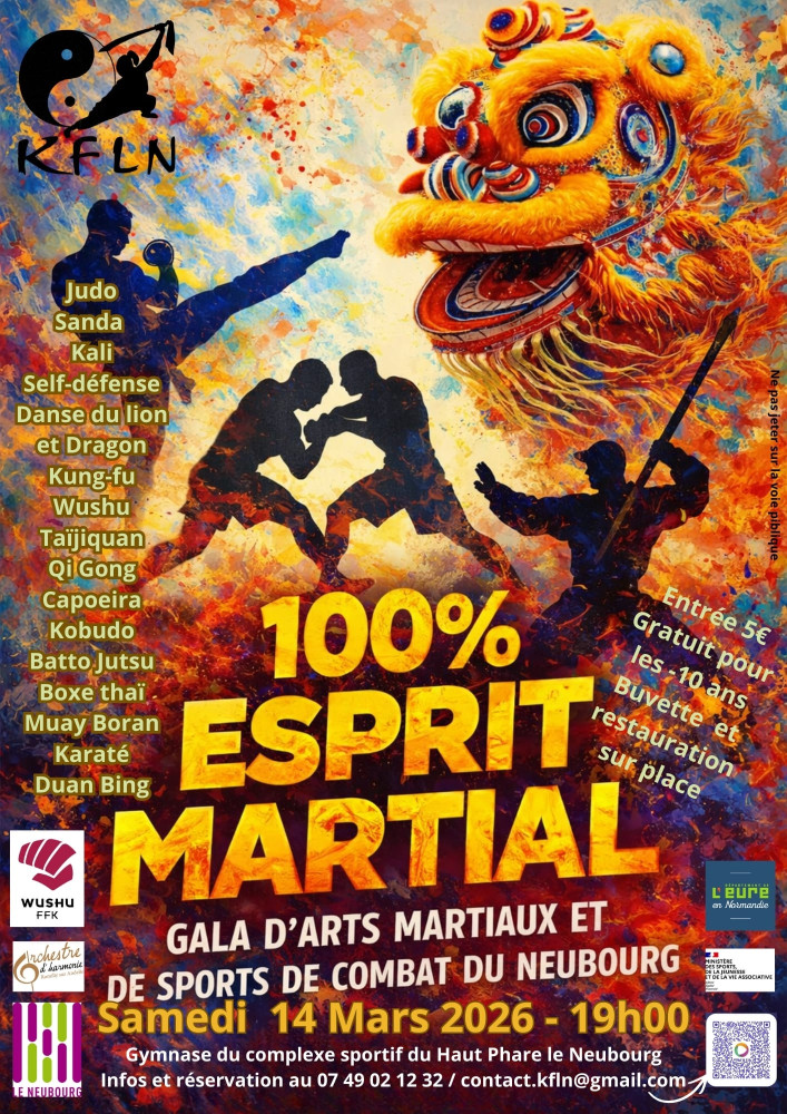Gala d'arts martiaux avec présentation de Boxe Thai, Kobudo, Kali, Taîso, Judo, Karaté, Kung-Fu, Sanda, Taï Chi, Qi Gong, Self défense et Capoeira.
