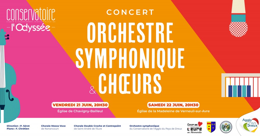 Vivez un concert de l'orchestre symphonique de l'Agglo du Pays de Dreux et des chorales Mezza Voce (Nonancourt) et Double Croche et Contrepoint (St André de l'Eure)à l'église de la Madeleine à Verneuil-sur-Avre.