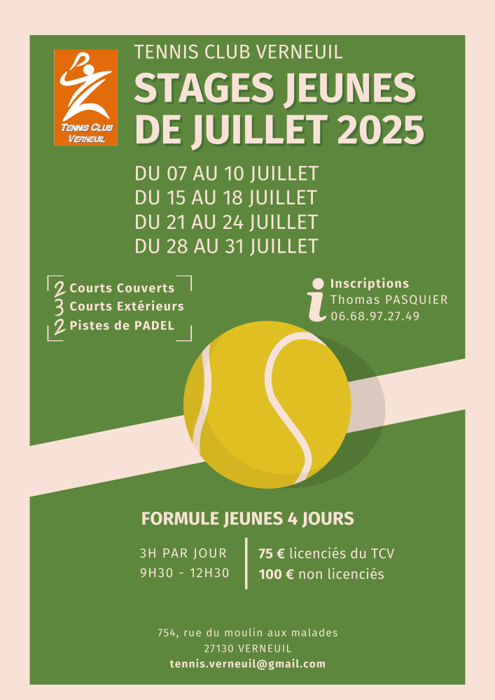 Stages de tennis JEUNES du 07 au 31 JUILLET le matin | 3H par jour pendant 4 jours