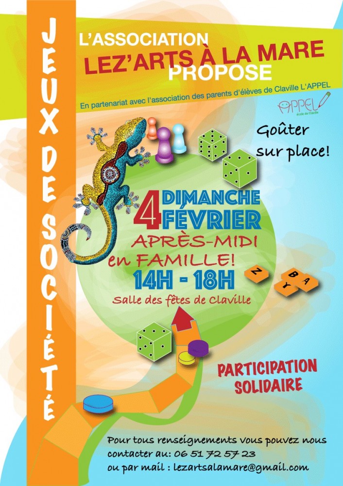 Venez pour vous amuser seul ou à plusieurs autour de jeux de société que l’association Lez’Arts à la Mare vous proposera durant cet après-midi.