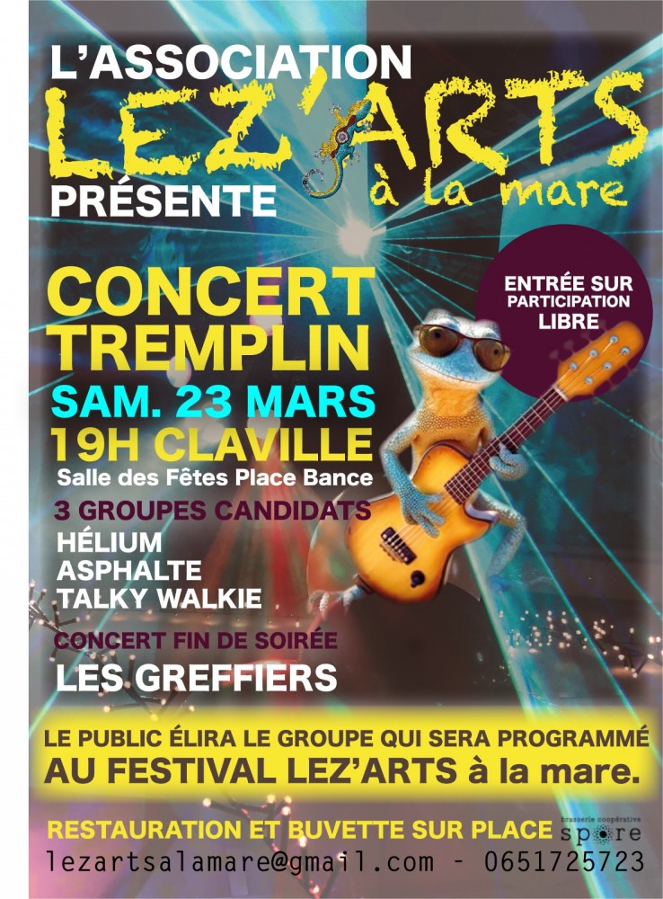 Le samedi 23 mars (à partir de 19h) : une soirée concert tremplin où 3 groupes viendront vous présenter leurs univers sur 5 chansons à tour de rôle.