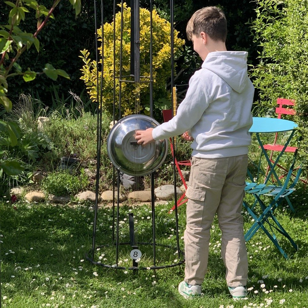 Après s'être familiarisé(e) avec les différentes sonorités des instruments et installations sonores du jardin, chaque participant choisira une sonorité et participera à la création d'une œuvre sonore en temps réel, où chacun contribuera à la composition collective en jouant sur les installations sonores dispersées dans le jardin.