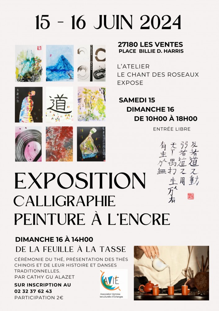 Samedi 15 et dimanche 16 Juin prochains, l'AVIE organise l' exposition annuelle de son l’atelier de calligraphie/peinture à l’encre « Le Chant des Roseaux »
