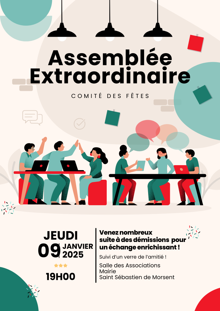L'Assemblée Extraordinaire du comité des fêtes de Saint Sébastien de Morsent aura lieu à la salle des associations de la mairie.