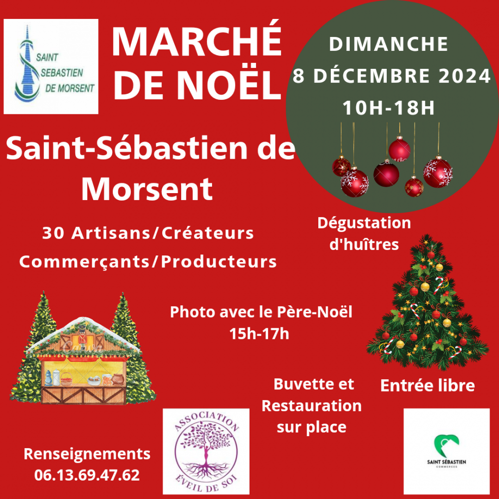 Premier marché de Noël, co-organisé par l'association Eveil de Soi et la municipalité de Saint-Sébastien de Morsent.