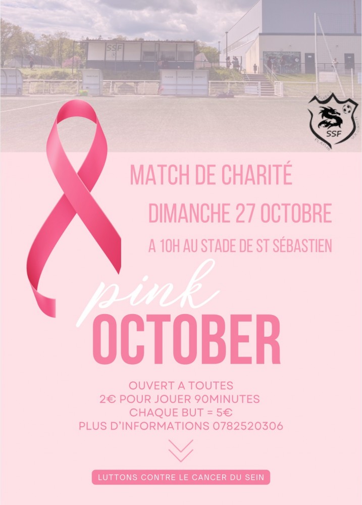 Dans le cadre d’octobre rose, pour sensibiliser et lutter contre le cancer du sein, le club ouvre ses portes pour participer à hauteur de 2€ et jouer durant 90 min un match de foot. Le club ajoutera 5€ par but marqué. Les fonds seront reversés à la ligue contre le cancer.