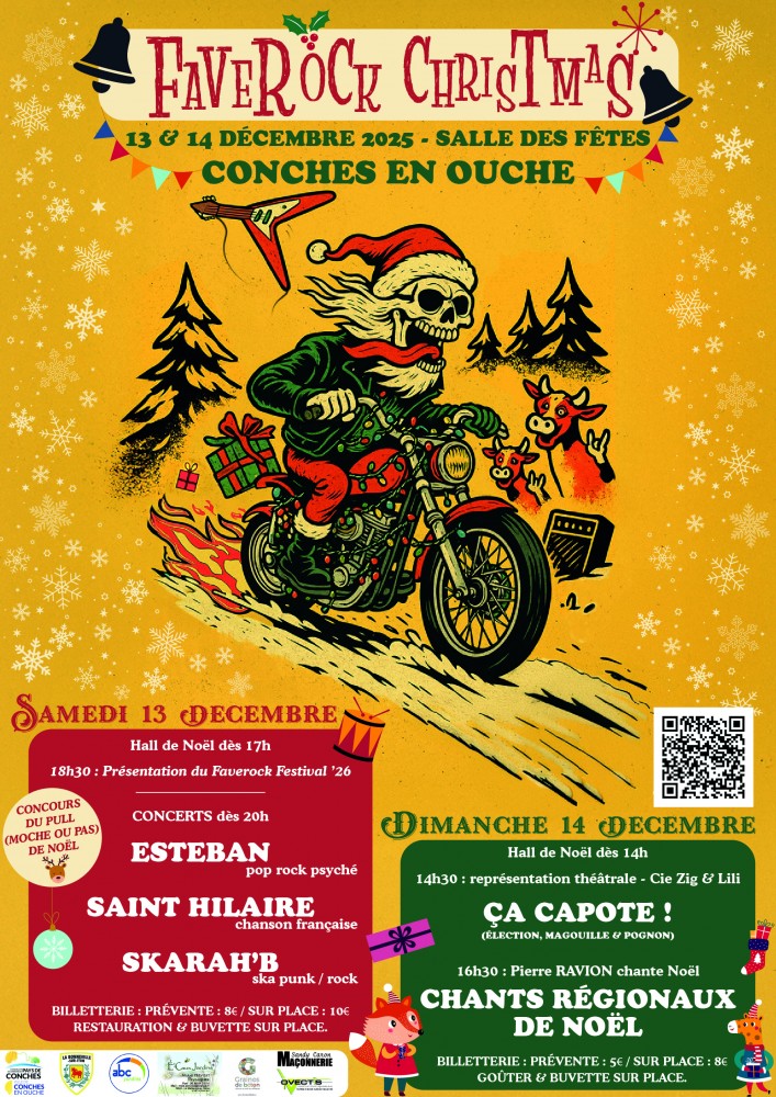 Le Faverock Festival fête Noël à Conches en Ouche les samedi 13 et dimanche 14 décembre! Au programme, des idées cadeaux et déco, et surtout, un esprit bien rock comme on aime avec concerts, chansons et théâtre...