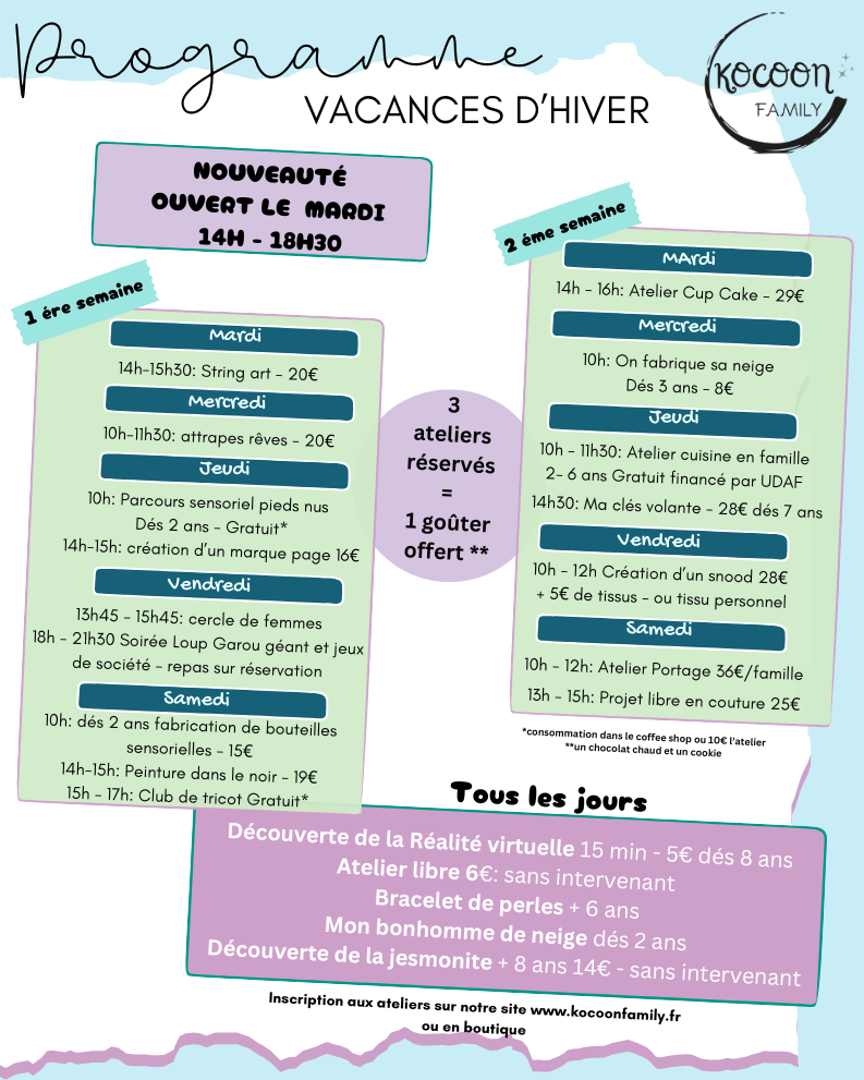 Et ce n'est pas tout ! Si vous participez à 3 ateliers, on vous offre un délicieux goûter