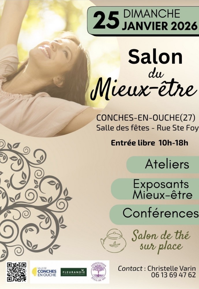 Salon du mieux-être organisé par l'association Eveil de Soi, dimanche 25 janvier 2026 de 10h à 18h, à la salle des fêtes de Conches en Ouche.