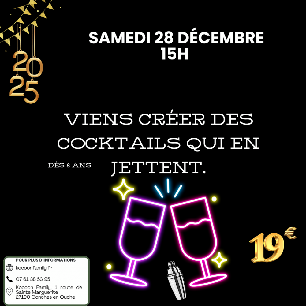 Des barmans vous proposerons de découvrir comment réaliser 3 cocktails sans alcool comme un vrai pro. Une super activités qui vous permettra de briller pendant les fêtes !