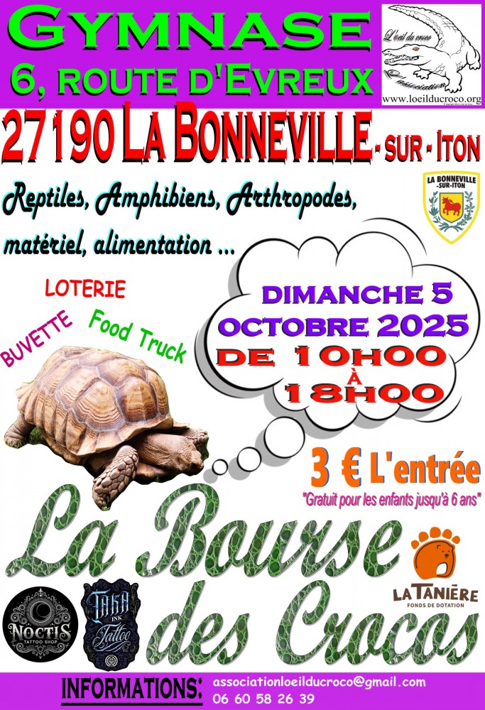Expo-vente de reptiles, amphibiens, arthropodes, poissons, crustacés, plantes, matériel pour la terrariophilie, alimentation pour reptiles (insectes et autres)