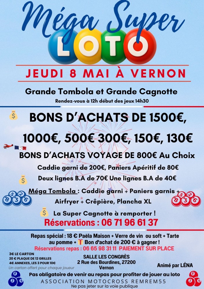 Venez tenter votre chance au Méga Super Loto de Vernon ! Invitez vos proches pour une journée mémorable remplie de surprises et de gains fabuleux !