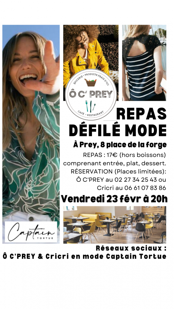 Repas Défilé mode Captain Tortue, à Ô C'PREY. Places limitées, réservez votre place avant de venir.
