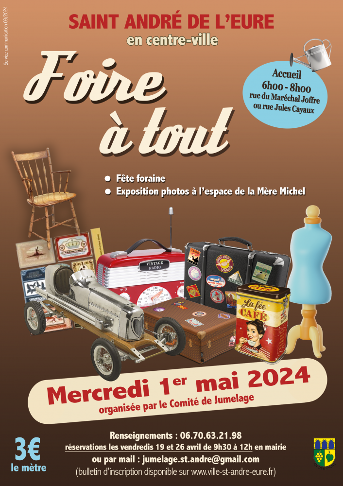 Foire à tout du 1er en centre-ville organisée par le Comité de jumelage