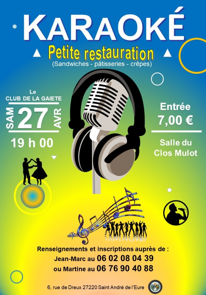 Karaoké organisé par le Club de la Gaieté avec petite restauration sur place.
