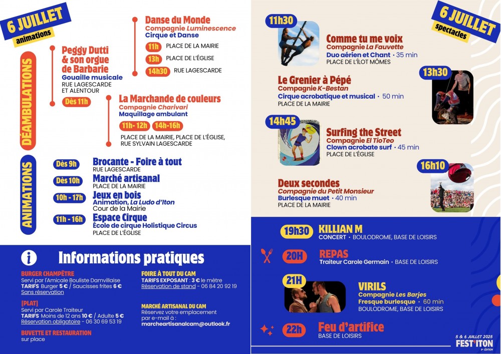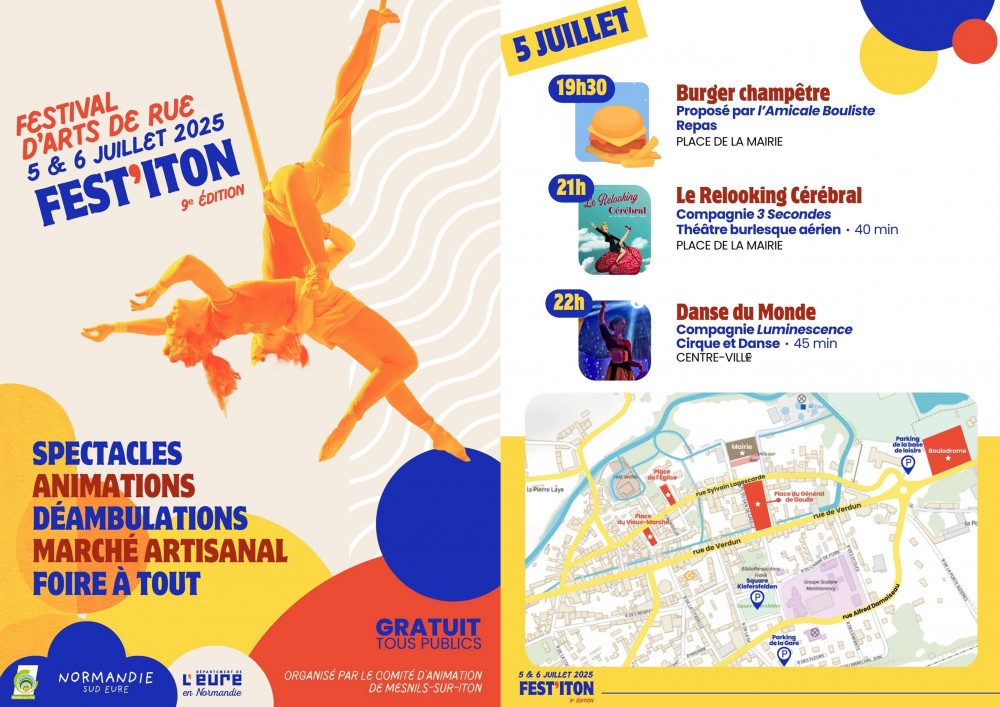 Pour sa 9e édition, le Fest’Iton vous offre son joyeux programme fait de théâtre de rue et d’arts du cirque. Duos aériens, clowns acrobates, marche aux lampions, danse, maquillage et musique : laissez-vous porter par le flot et déambulez dans les rues d’un spectacle à l’autre.
