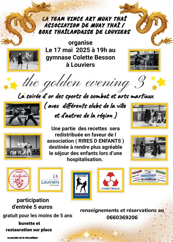 L association Team Vince Art Muay Thaï ( club de boxe Thaïlandaise à LOUVIERS ) organise THE GOLDEN EVENING 3