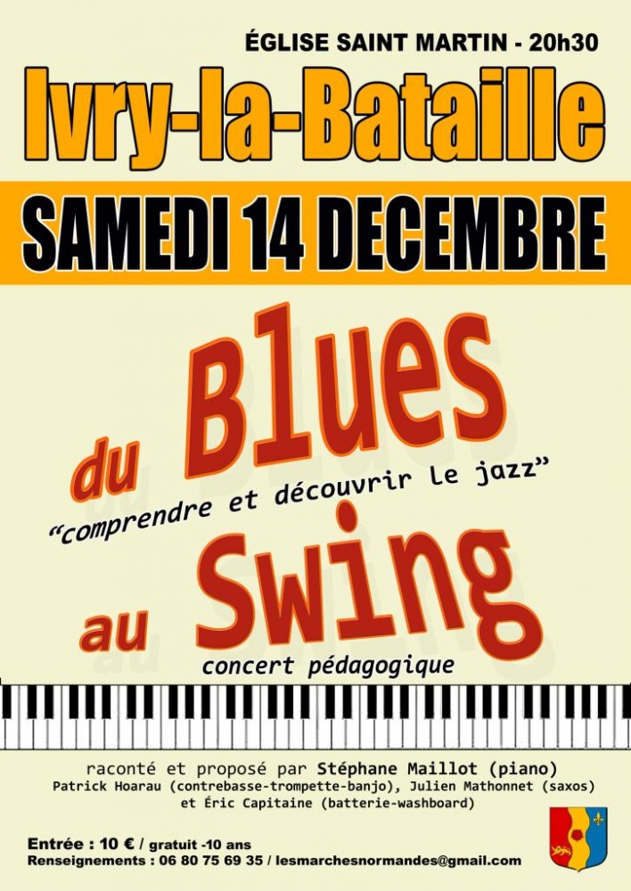 Stéphane Maillot, pianiste et enseignant musical, accompagné par des musiciens de talent, propose de retracer dans les grandes lignes et en musique, l’histoire du jazz, de ses origines, de l’influence du blues jusqu’au swing des années 40-50 et aux débuts du be-bop.