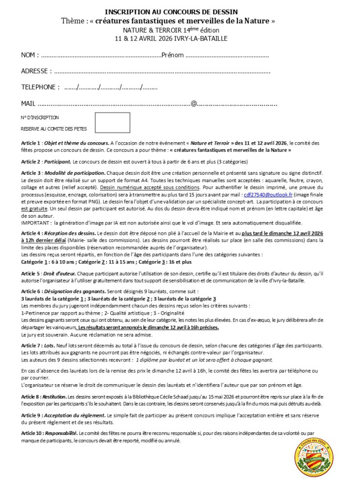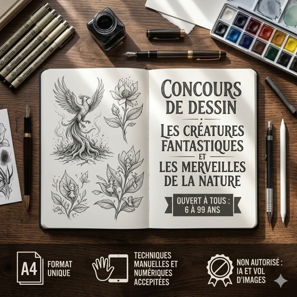 • ️ Imaginez : Grand concours de dessin « Créatures fantastiques & Merveilles de la Nature » (ouvert de 6 à 99 ans ! Lots à gagner).