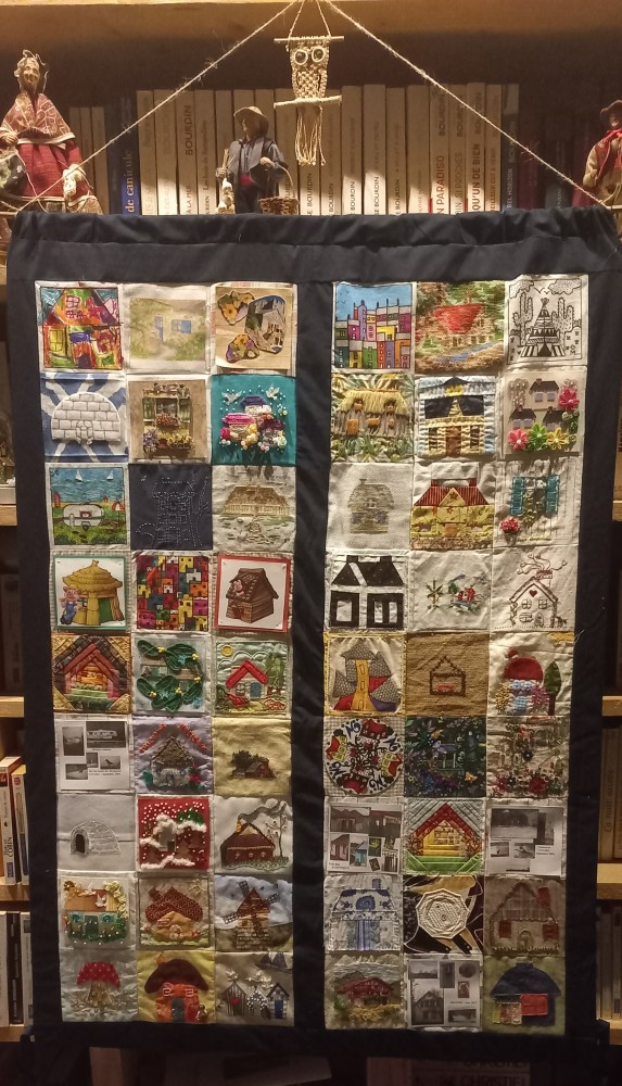 Les 360 petits carrés reçus pour l'ouvrage collectif ont été assemblés et seront exposés au salon avant de partir en tournée vers la Bretagne.