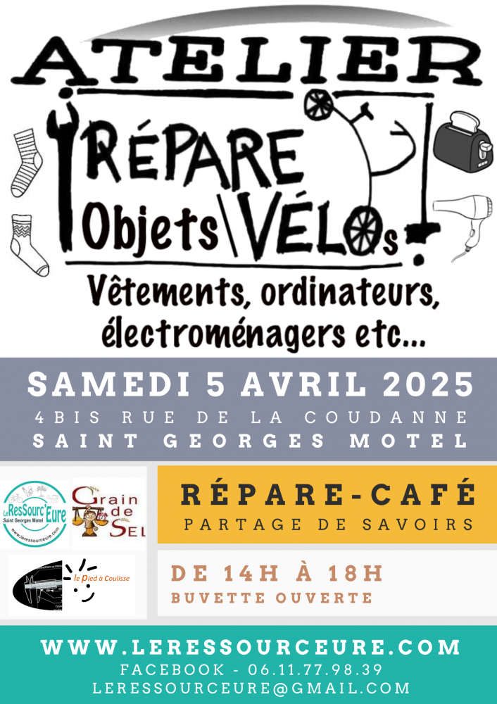 En partenariat avec l'équipe du SEL DROUAIS et du PIED À COULISSE, venez vous initier à la réparation de vos appareils, vêtements, accessoires, vélos ...