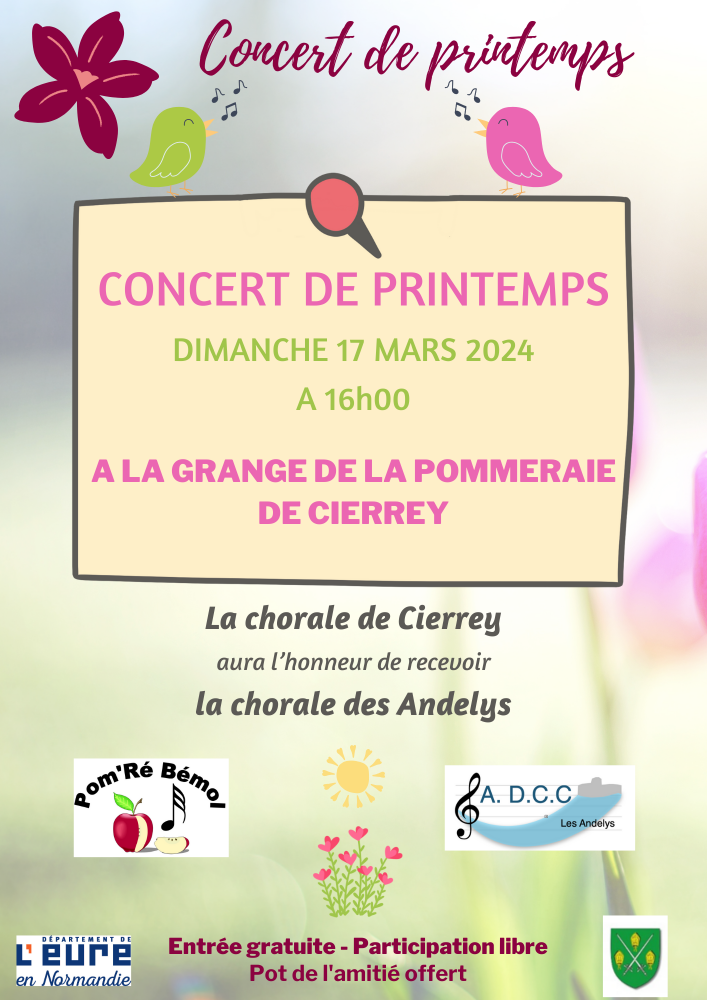 Tous à vous agendas pour passer un agréable moment avec la chorale de Cierrey et la chorale des Andelys pour fêter le printemps