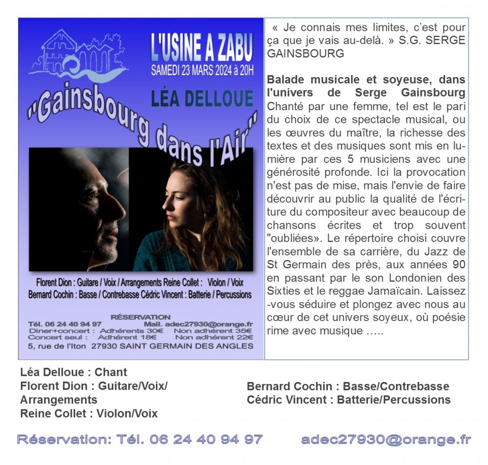 Tarif adhérent > concert et repas : 30 € / Non adhérent : 35 €