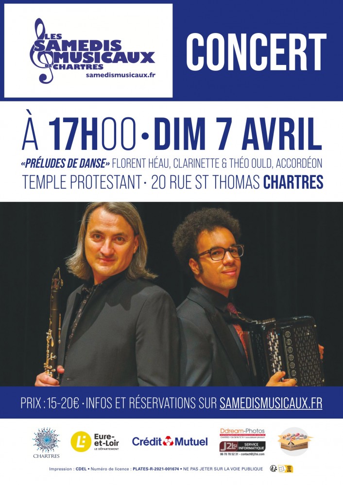 Éminent clarinettiste déjà venu aux Samedis Musicaux où il a chaque fois récolté tous les suffrages, Florent Héau a voulu aider un jeune accordéoniste très talentueux , Théo Ould.