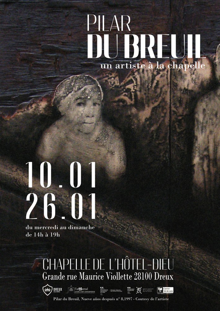Née à Valladolid (Espagne) en 1953, Pilar du Breuil vit à Champhol en Eure-et-Loir. Artiste plasticienne, elle est arrivée en France en 1975 et se consacre pleinement à sa pratique depuis 1980. À travers son travail, elle crée des associations d’images et de matières cherchant à dépeindre la condition humaine en lutte pour résister à l’oubli ou à la destruction.