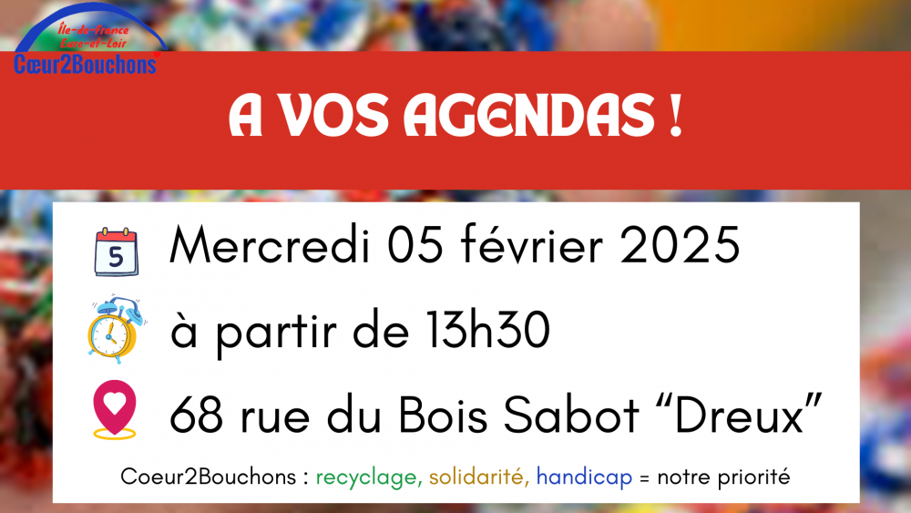 Nous recherchons environ 30 bénévoles pour nous aider à vider + de 900 sacs de bouchons.