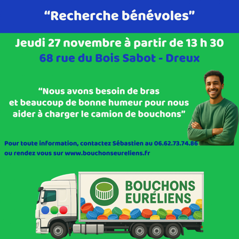 L’association Bouchons Euréliens recherche des bénévoles pour le chargement du prochain camion de bouchons !
