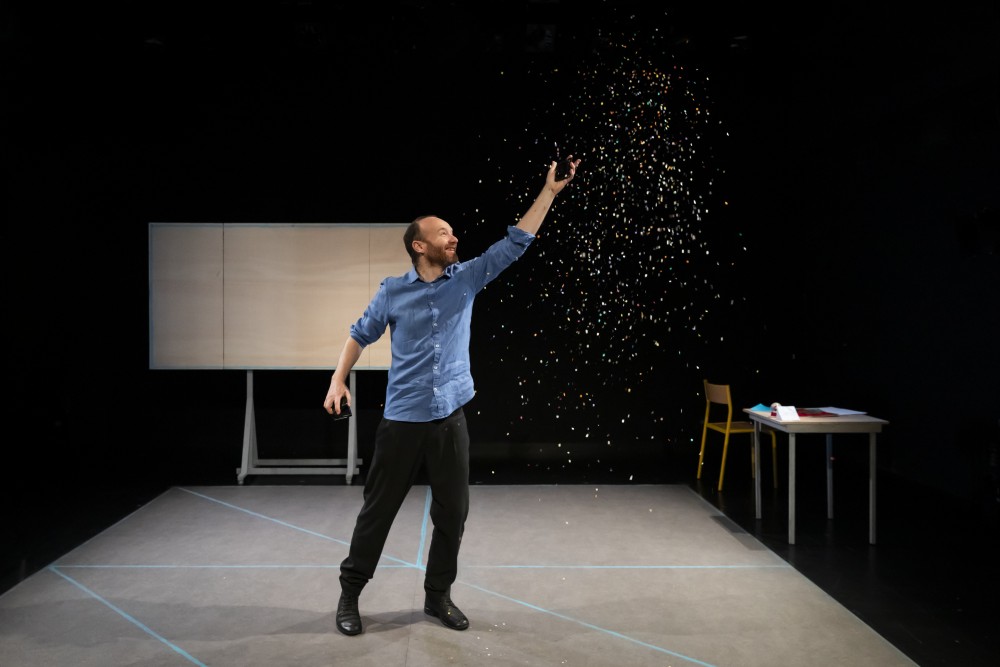 Sébastien est comédien, il est seul, il nous parle de son expérience, l’histoire d’un grand saut dans le vide, un basculement. On comprend qu’en dehors de son métier d’acteur, il vient de prendre en charge une classe de 27 élèves. C’est le regard candide d’un novice sur le monde incroyable et fou de l’enseignement. Des personnages apparaissent furtivement : une maître formatrice, des collègues, des élèves… C’est le choc de la découverte d’un monde nouveau. La pièce raconte les tâtonnements, les premiers pas, les petites anecdotes, les grands bouleversements de ces dix mois partagés à vingt-huit (vingt-sept plus un). Elle raconte aussi les va-et-vient entre cette classe et le plateau de théâtre où Sébastien poursuit son métier. Deux vies qui se mélangent, se télescopent, s’enrichissent.