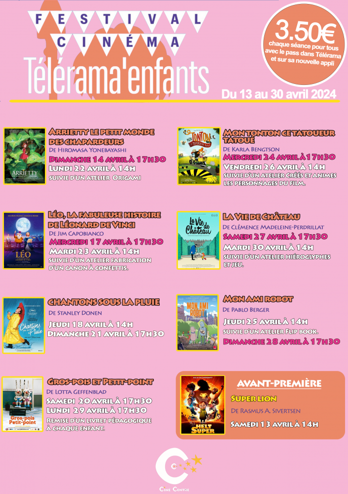 3€50 chaque séance pour tous avec le pass Télérama