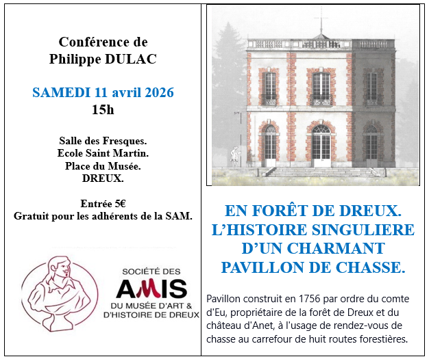 Pavillon construit en 1756 par ordre du comte d'Eu, propriétaire de la forêt de Dreux et du château d'Anet, à l'usage de rendez-vous de chasse au carrefour de huit routes forestières.
