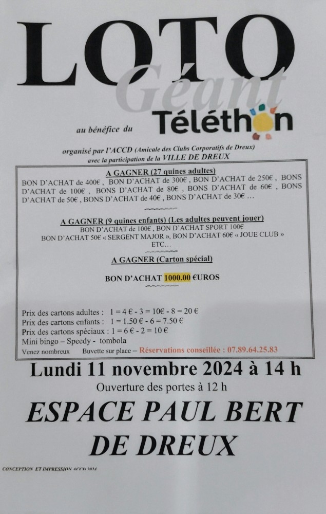 Le lundi 11 novembre 2024 à 14h00 à l'Espace Paul Bert de Dreux.