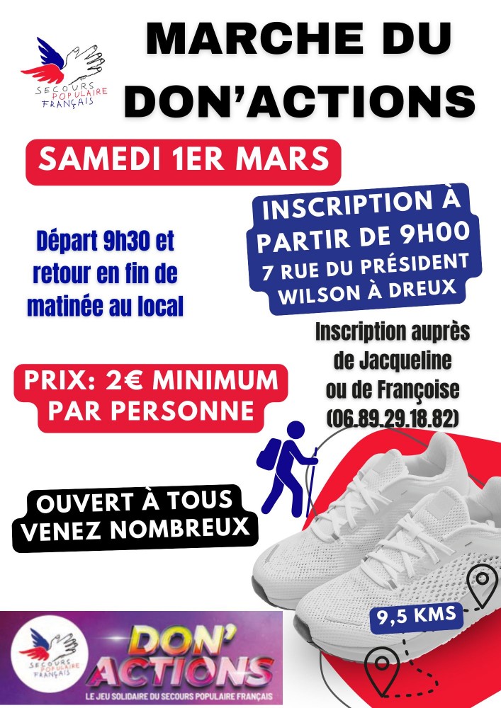 Nous organisons notre Marche du Don'actions, Le prix est de 2€ minimum par personne (le prix d'un ticket de Don'actions).