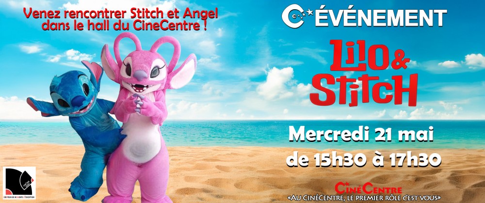 Stitch et Angel débarquent dans le hall du CinéCentre le 21 mai de 15h30 à 17h30 pour une rencontre inoubliable !