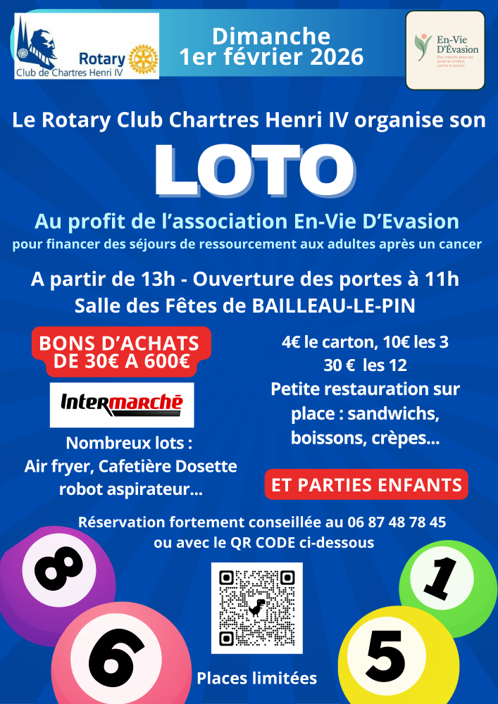 LOTO au profit de l'Association En-Vie D'Evasion pour financer des séjours de ressourcement aux adultes après un cancer.